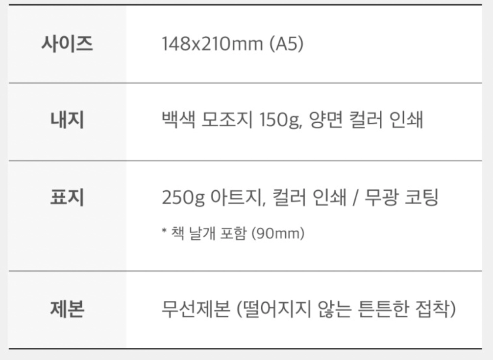 표지 : 250g 아트지 (무광 코팅)