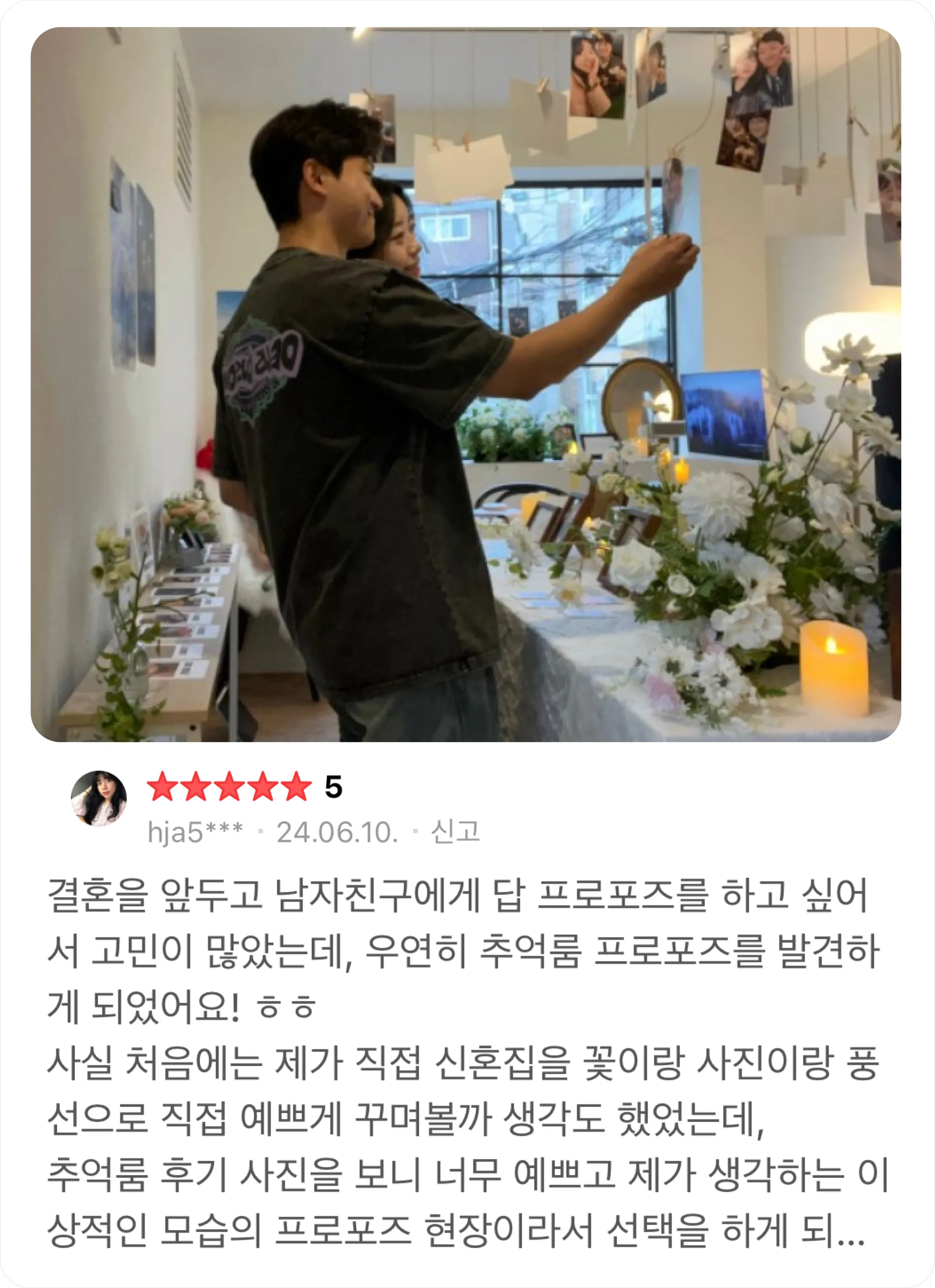 추억룸 프로포즈에서 100% 감동시켰던 그 노하우를 그대로 옮겼어요!