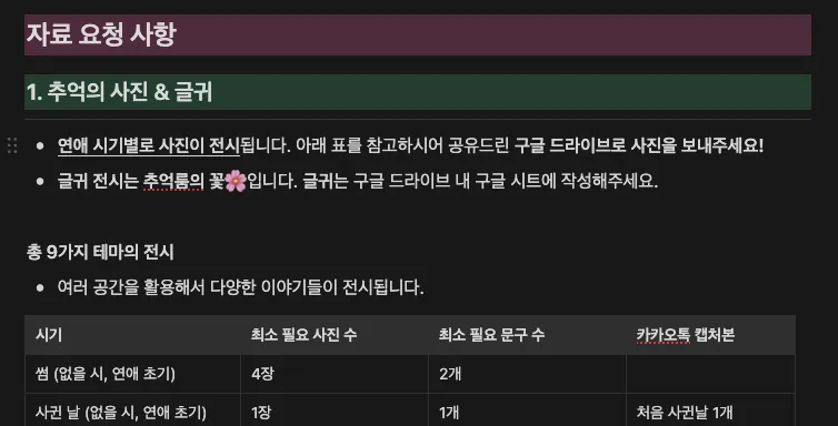 안내 후, 사진과 문구를 올려주실 구글 드라이브 권한을 드립니다. 해당 드라이브에 사진과 글귀를 업로드해주시면 됩니다.