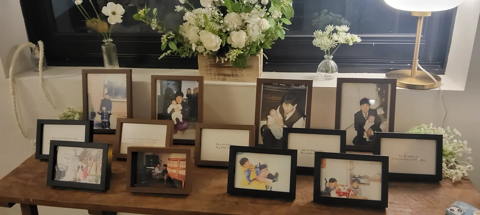 기본 구성 (추억룸 전시 90분, 사진 최소 50장, 텍스트 엽서 30장, 가족 맞춤형 공간 기획, 기본 센터피스 조화 3개, LED초 24개, 가족 편지 영상 상영) : 비용은 상담 후, 결정 (공휴일 제외)