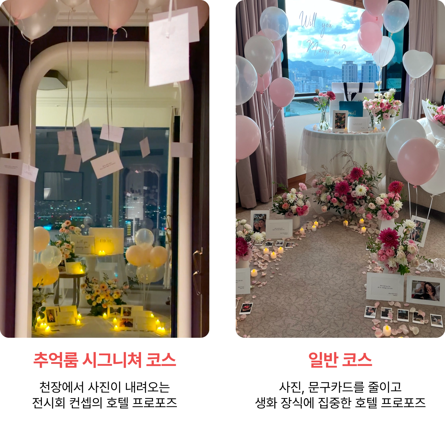 더 많은 사진과 문구로 감동을 더하고 싶다면 “추억룸 시그니쳐 코스”를 추천드립니다!