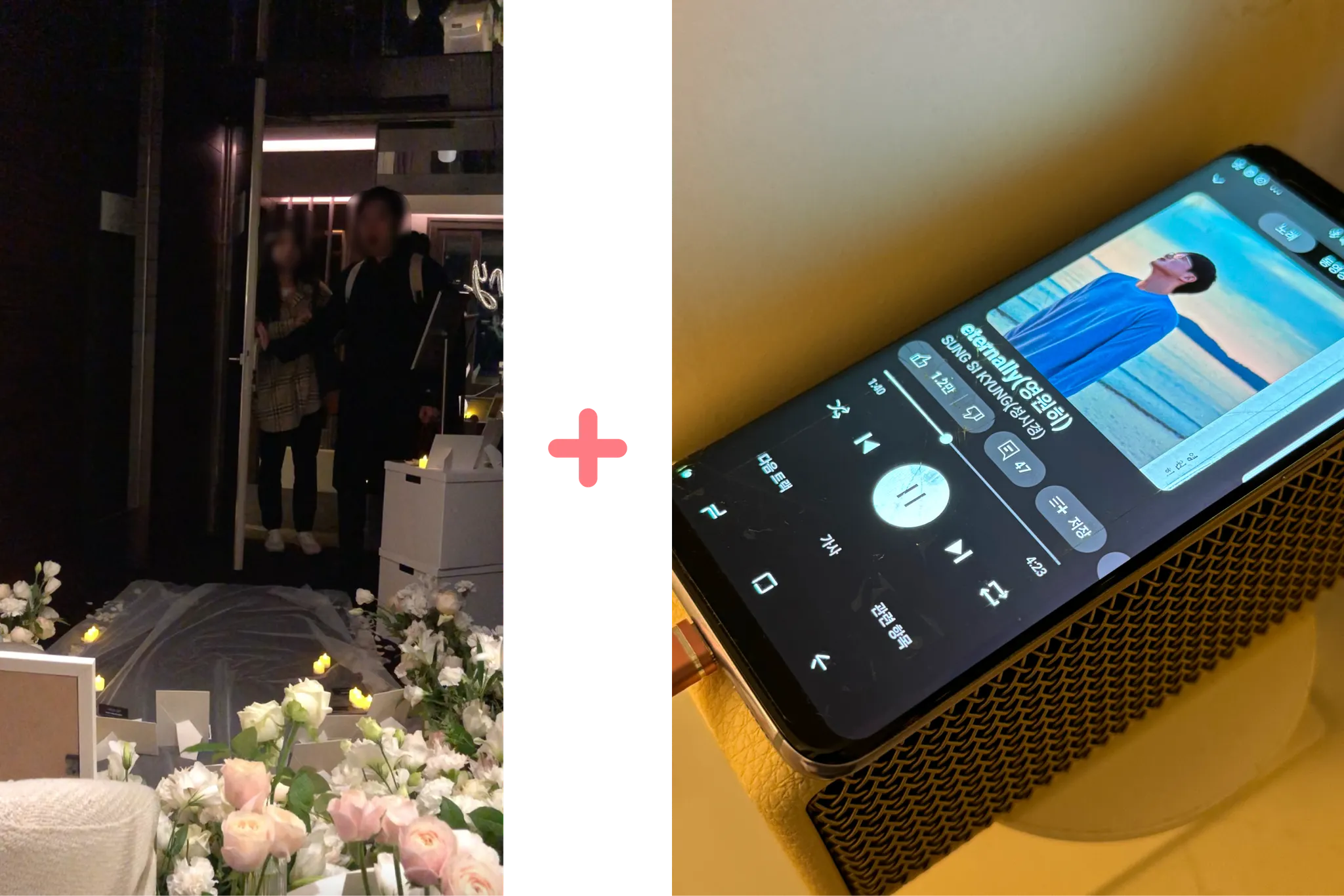 더 많은 사진과 문구로 감동을 더하고 싶다면 “호텔 추억룸 코스”를 추천드립니다!