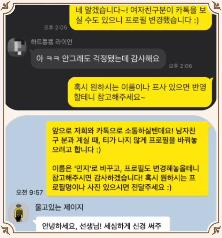비밀 카톡 계정으로 철저한 준비를 도와드립니다.