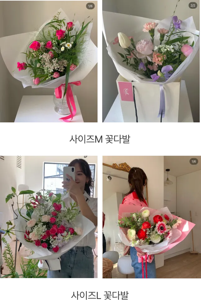 코스별 차이는 생화의 양, 화병 개수, 거울 플라워 포토존 세팅 여부입니다!
