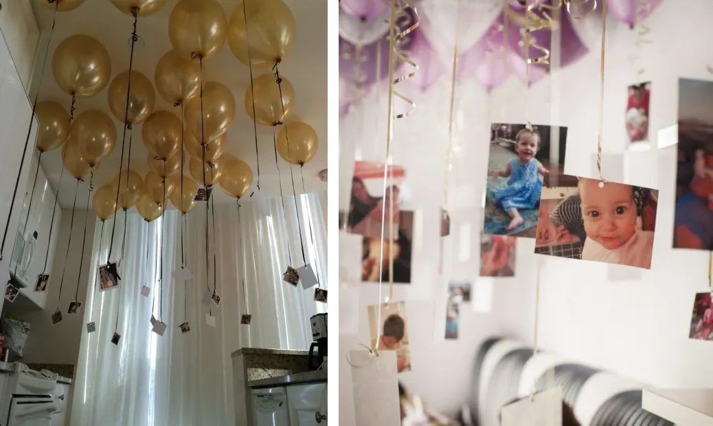 천장 사진모빌 패키지 (모빌용 사진/문구 18장, 헬륨풍선 18개)